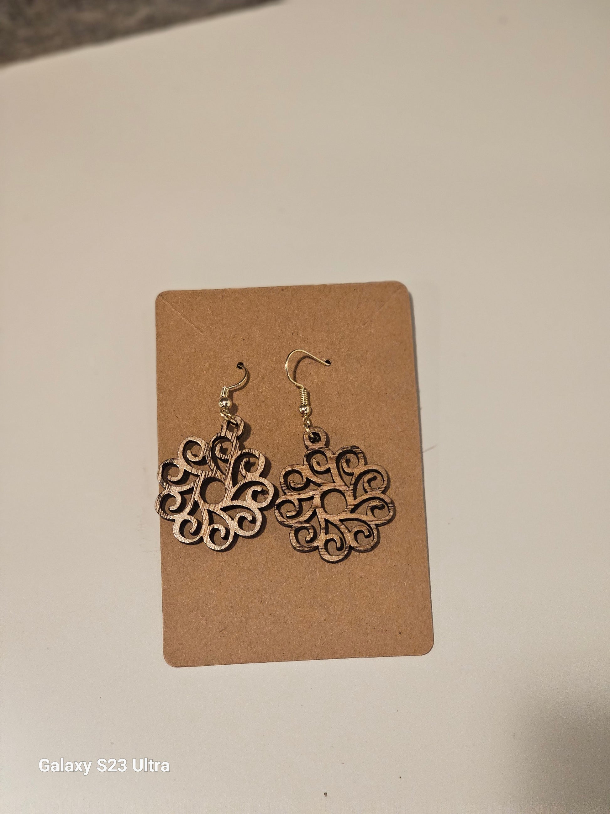 Bring a touch of elegance and artistry to your look with these beautifully crafted wooden earrings. Designed in a delicate swirling floral pattern, they offer a perfect blend of natural charm and timeless style. The intricate cutouts highlight the natural wood grain, making each pair unique. Lightweight and versatile, these earrings add a graceful accent to everyday wear or special occasions.