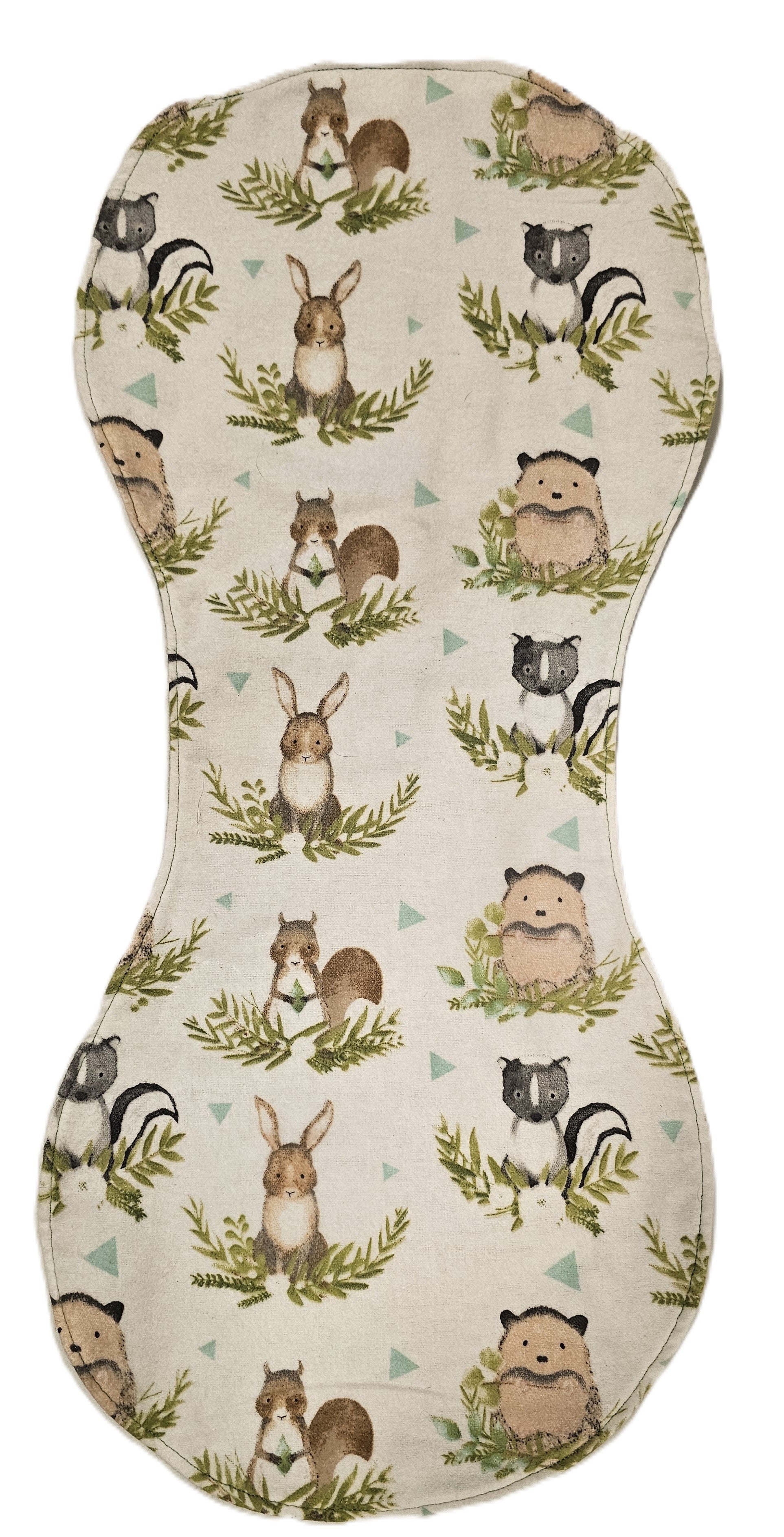 Make feeding time both fun and functional with our adorable Woodland Creatures Baby Burp Cloth! This beautifully contoured burp cloth features a charming forest animal print, including squirrels, bunnies, skunks, and hedgehogs nestled among green foliage and soft geometric accents. Crafted from soft, absorbent fabric, it’s gentle on baby’s skin and offers excellent shoulder coverage for mess-free burping.